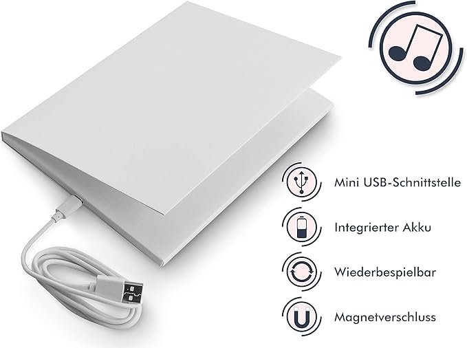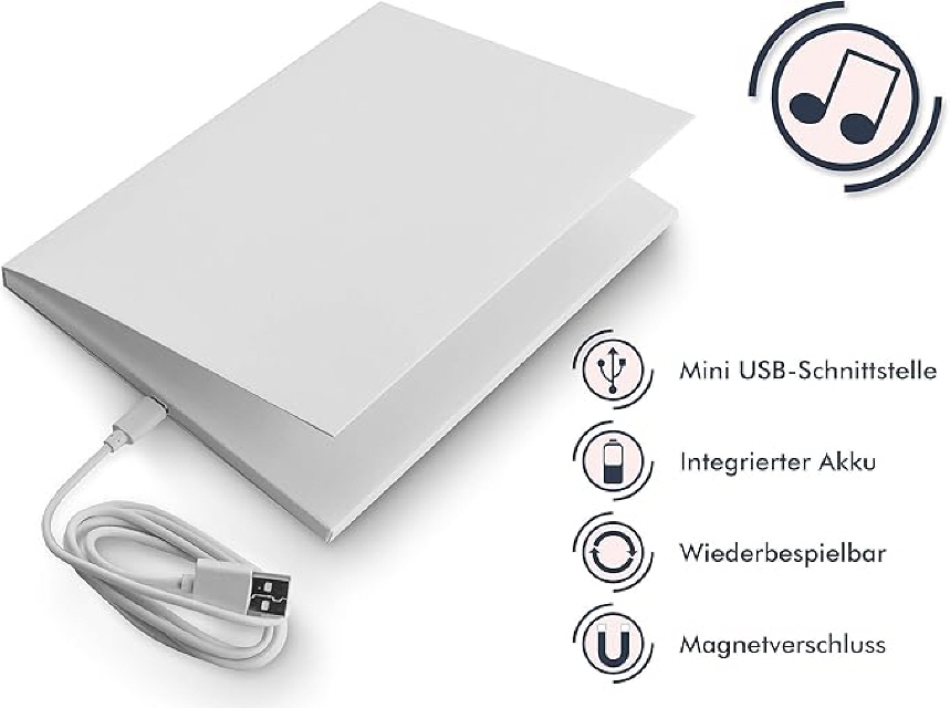 Dann bestelle doch einfach die SoundGreets-Karte bei uns und speichere eine ganz persönliche Nachricht drauf - so hast du trotzdem ein tolles, persönliches Geschenk. Die Karte kannst du selbst beschriften und gestalten. Dank USB-Anschluss und Akku bleibt die Freude daran lange lebendig. Die Karte hat eine Kapazität von 4min und kann problemlos mit dem Computer verbunden werden. Sie kostet 29.- inkl. Versand, die Lieferung erfolgt gegen Vorkasse.